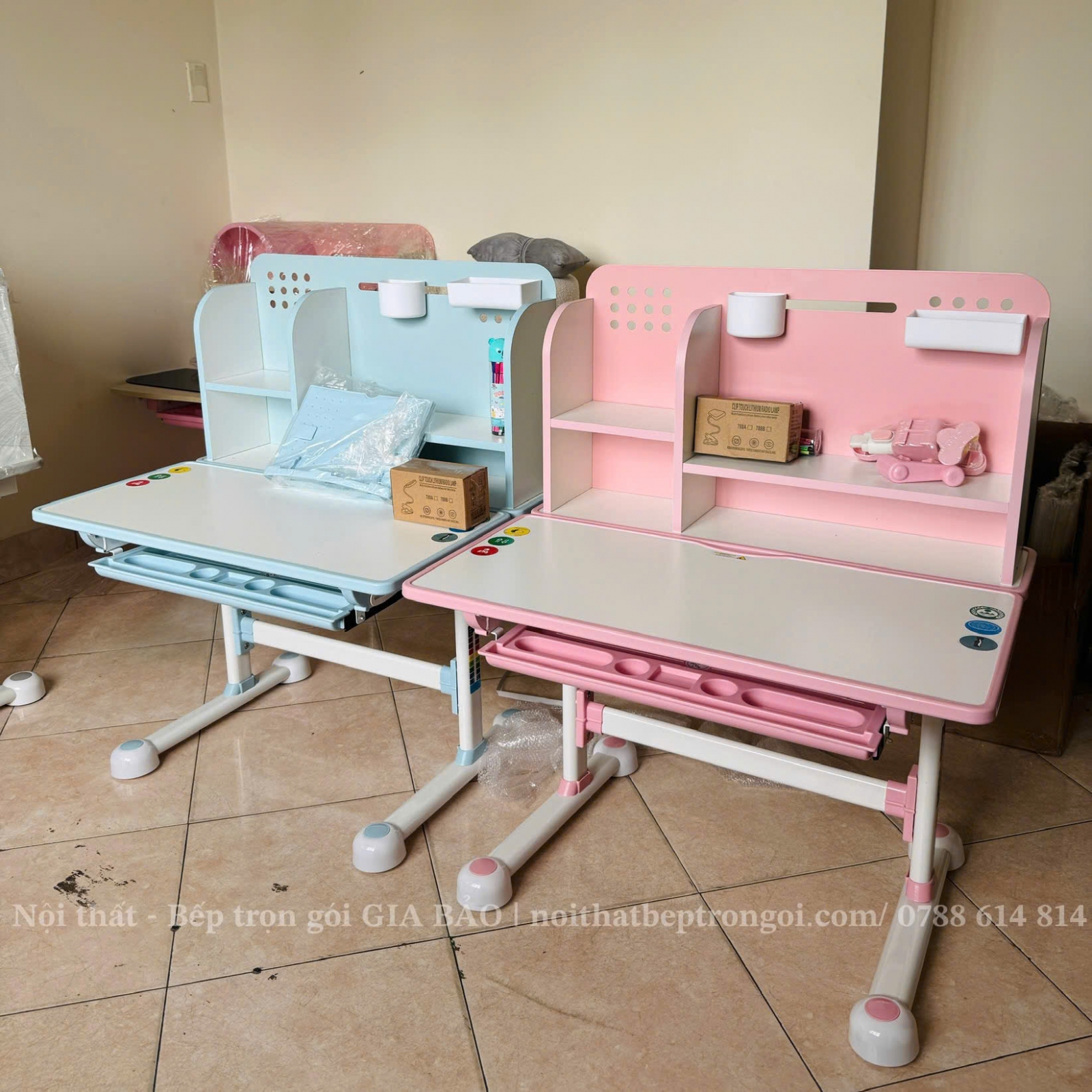 Bàn làm việc phụ kiện được làm từ nhựa nhập khẩu chất lượng cao, đảm bảo độ bền và an toàn cho trẻ em. Mặt bàn có chất liệu gỗ chống mối mọt chất lượng.
